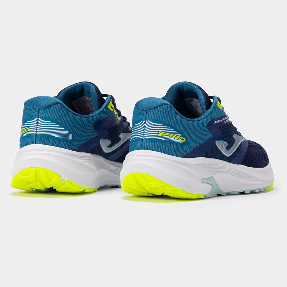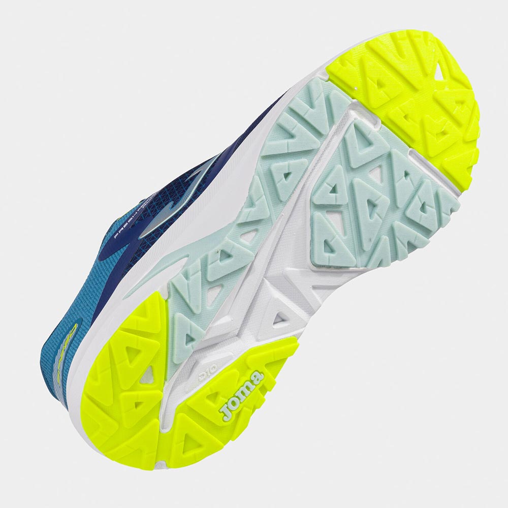 El upper continúa siendo súper ligero y transpirable, Combina Jacquard personalizado delantero con perforaciones VTS en favor de la ventilación del sudor con tejido antidesgarro trasero para elevar la durabilidad. Como sistema de ajuste, hemos aplicado la tecnología JOMA SPORTECH de sintético termosellado.