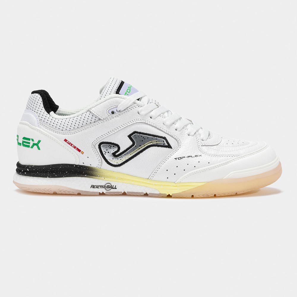 Zapatillas de futbol sala Top Flex Rebound Indoor diseñadas para jugadores de alto rendimiento que buscan amortiguación reactiva y confort profesional; cuentan con una parte superior de piel suave que ofrece gran flexibilidad, adaptabilidad y excelente tacto con el balón, ventilación mejorada con VTS, refuerzo PROTECTION en la puntera, media suela con sistema dual Reactive Ball y phylon que proporciona una combinación ideal de absorción de impactos, reactividad y estabilidad, además de una suela de caucho DURABILITY que no deja marcas y asegura tracción en superficies indoor.