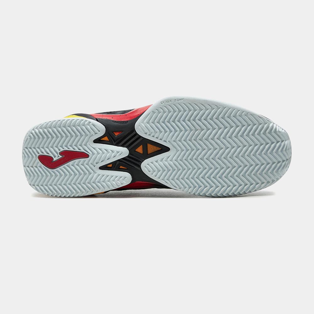 Zapatillas de tenis para hombre. Modelo desarrollado para jugadores en perfeccionamiento que practican desplazamientos con intensidad moderada. Integran tecnología de sujeción y estabilidad.